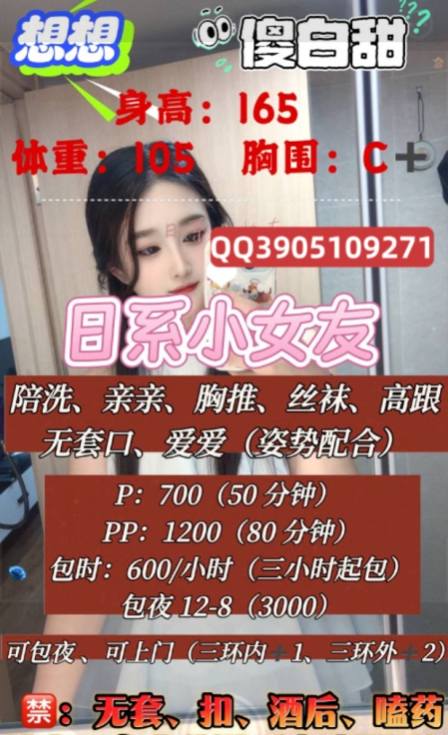 详细介绍:颜值很高的老师,妆容精致,皮肤真的很白很嫩,老师骨架比较大,值得一提的是胸,胸型好看,乳头粉色的。下面也粉粉嫩嫩的。口活很好,唯独就是缺少🐍吻,但是不影响,本来也不喜欢🐍吻。下面做的时候水多还不时有水声。很满意的一次体验,值得回锅